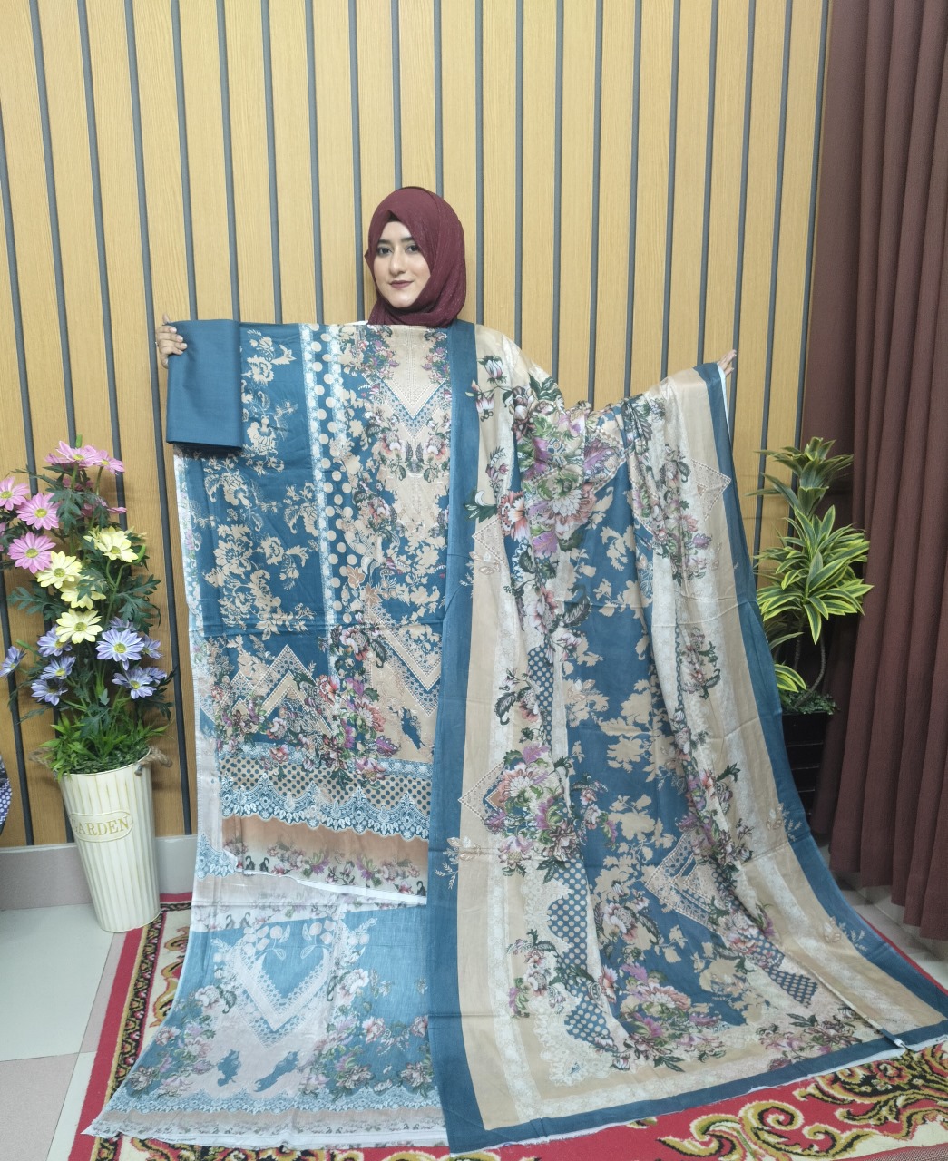 জামার কাপড় সোয়া তিন গজ, ওড়না ৫হাত, সালোয়ার আড়াই গজ।