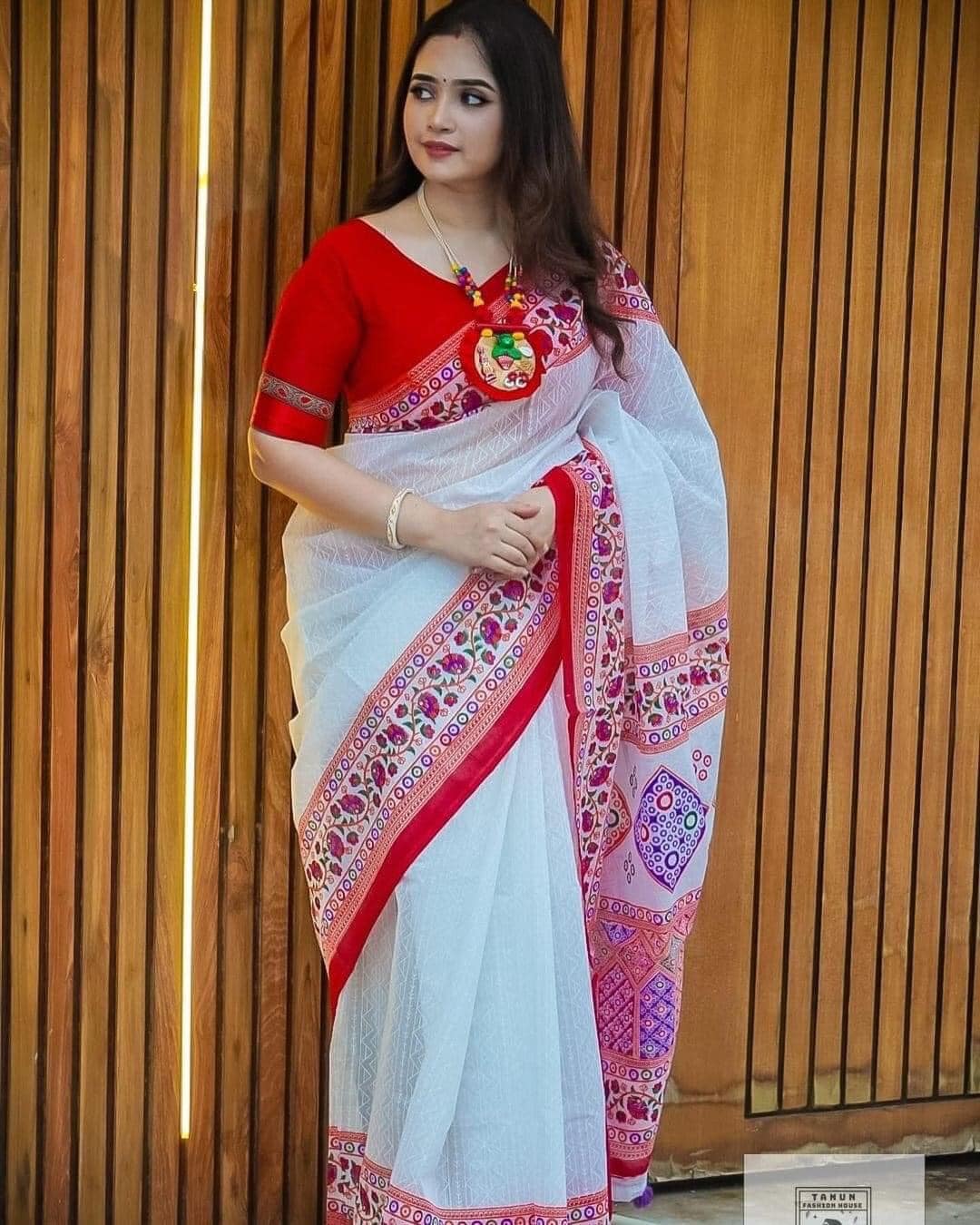 ২। পুরো শাড়িতে আকর্ষণীয় ডিজিটাল প্রিন্টরের কাজ।