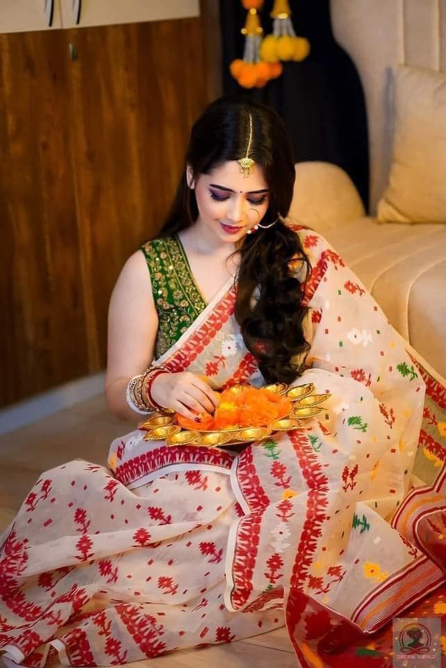 ২। পুরো শাড়িতে আকর্ষণীয় ডিজিটাল প্রিন্টরের কাজ।