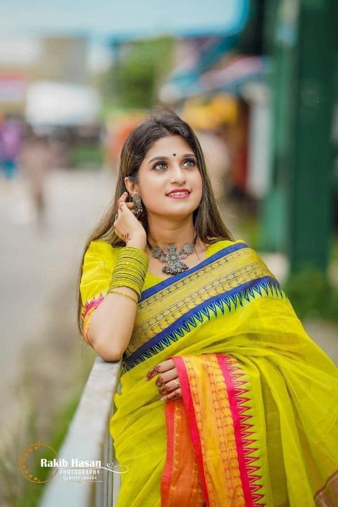২। পুরো শাড়িতে আকর্ষণীয় ডিজিটাল প্রিন্টরের কাজ।