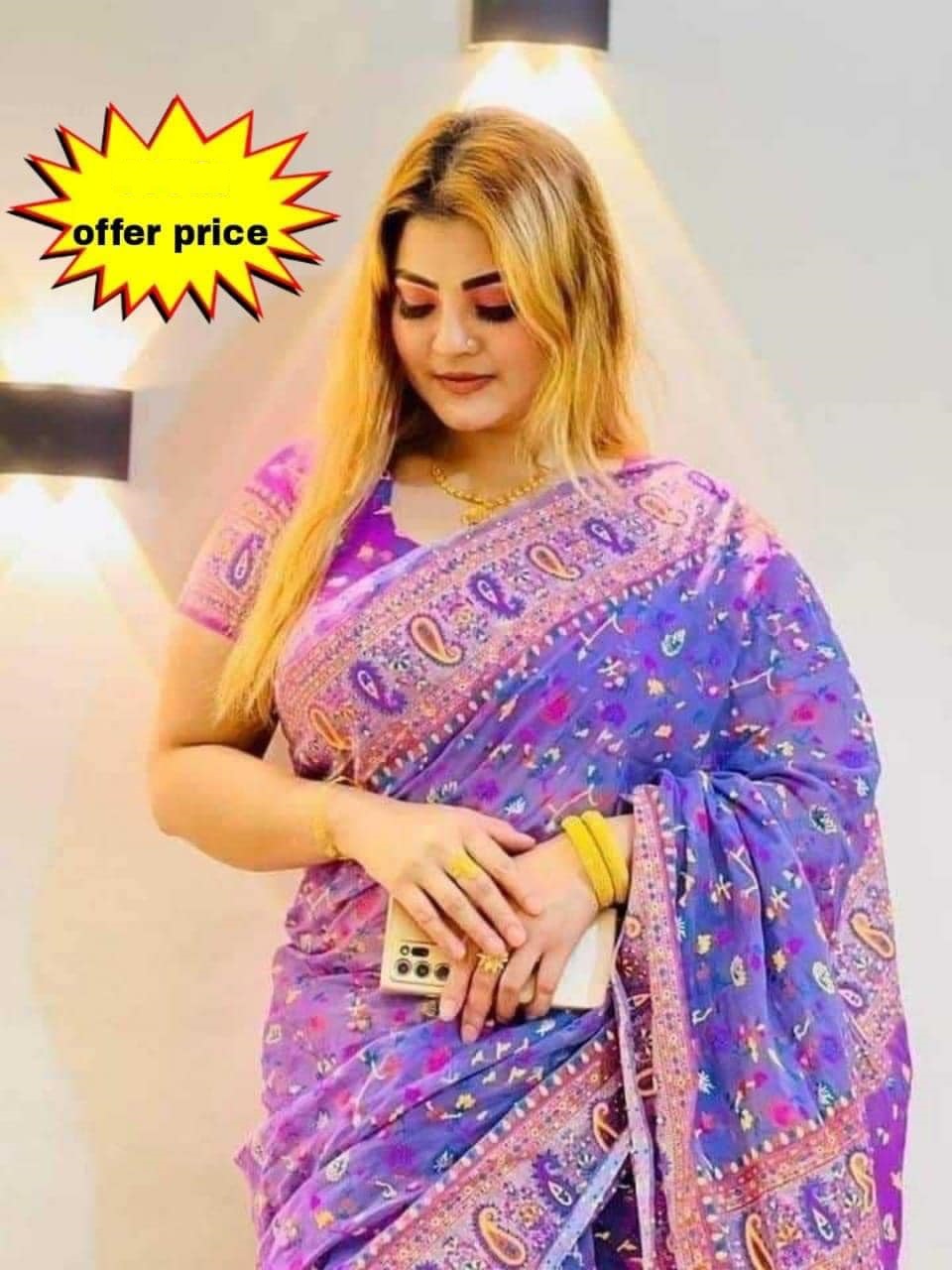 ডিজিটাল প্রিন্ট শাড়ি সাথে সেম প্যাটার্নের ব্লাউজ পিস।