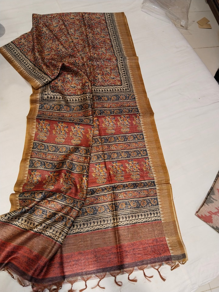 Indian Giza Kalamkari Silk Saree.