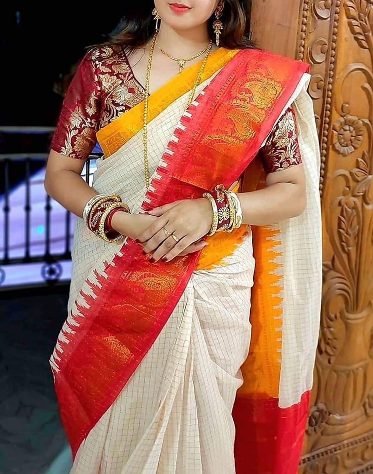 ইন্ডিয়ান মাধুরাই শাড়ি। 14 হাত শাড়ি। সাথে রানিং ব্লাইজ পিস আছে।