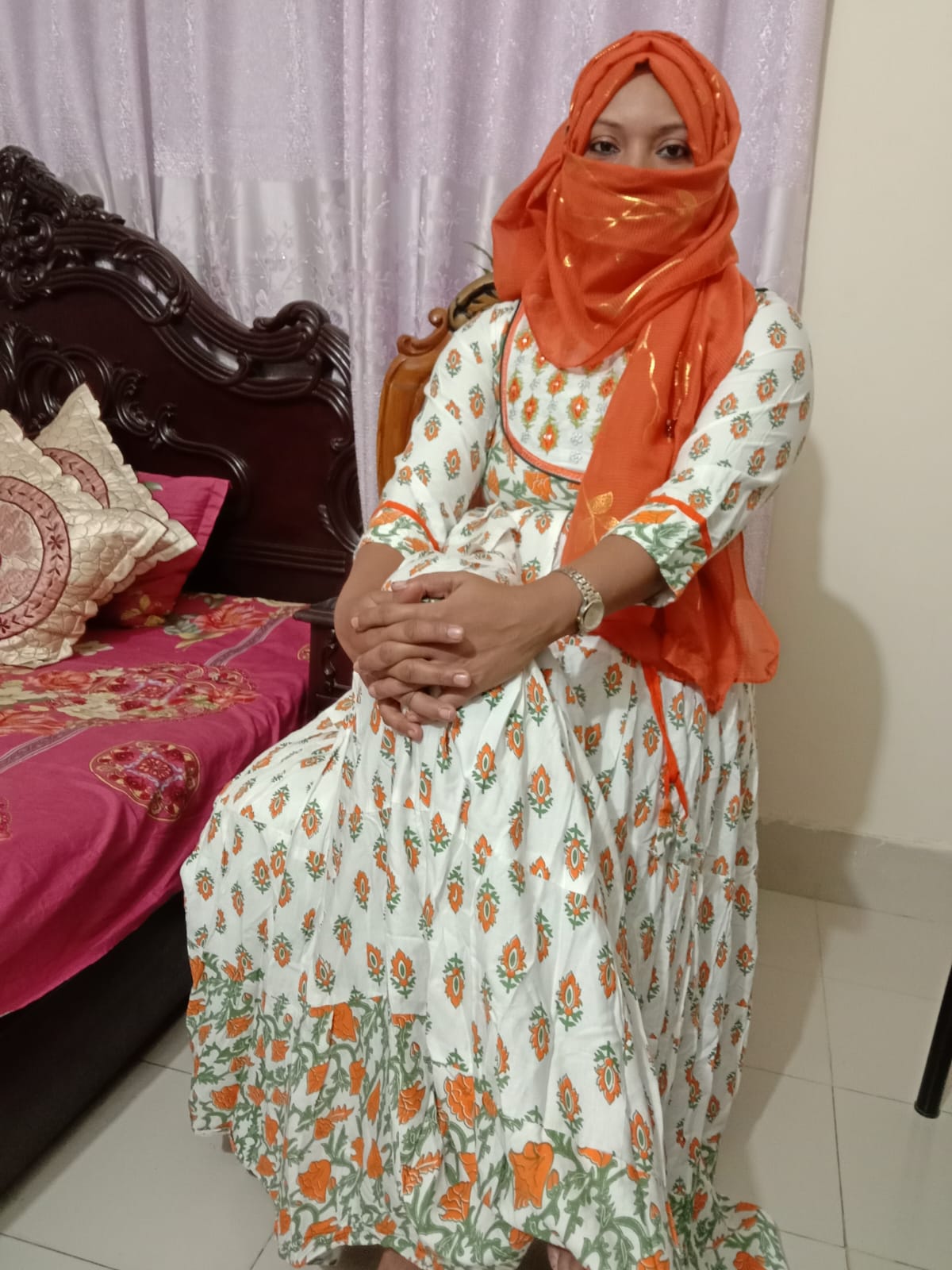 Screen printed and embroidered one piece ready made gown